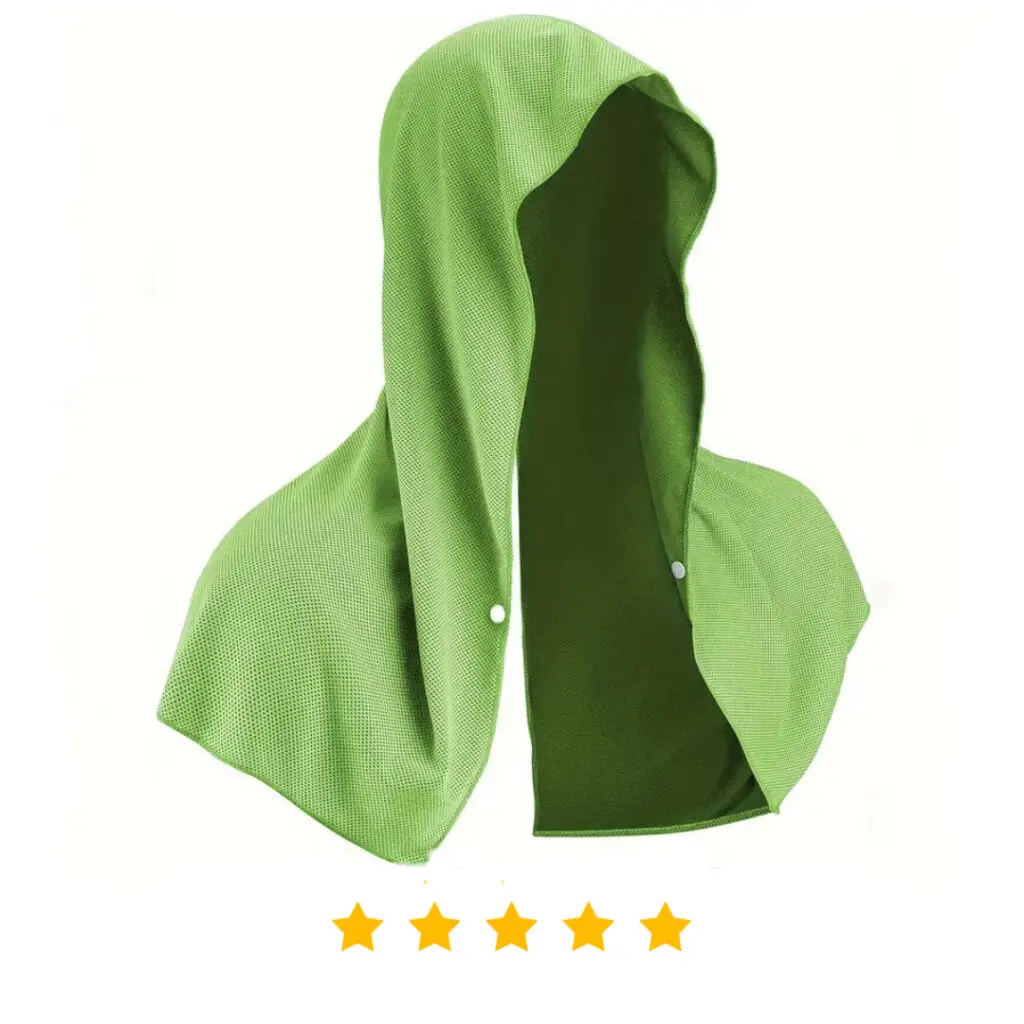 Well, it’s a “Towel hat” and it’s a wonderful fit over your head, neck and shoulders. In combination with the “outback hat”, this makes an unbeatable pair. What’s the secret?